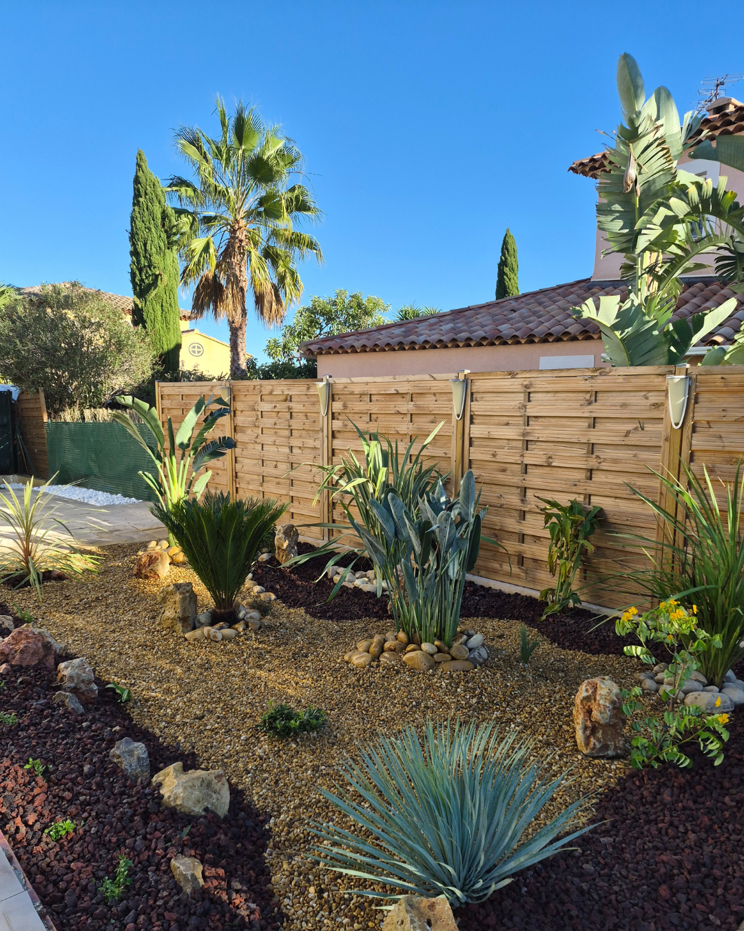 Les Jardins de Laurent réalise des aménagements extérieurs personnalisés pour les particuliers dans tout le Var. Nous concevons des jardins méditerranéens sans entretien, des jardins exotiques ou tropicaux luxuriants, des rocailles minérales, des massifs végétalisés, des potagers sur mesure et des jardins zen. Notre équipe structure vos espaces avec des plantes adaptées au climat sec, du paillage minéral, des bâches anti-repousse, des traverses paysagères et des jardinières créatives. Vous bénéficiez également de conseils personnalisés et, si besoin, d’un plan d’aménagement avec des photomontages.