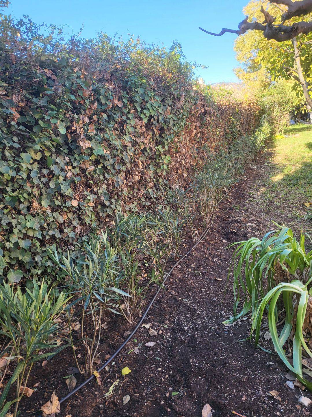 Lors de notre rendez-vous préalable pour une estimation précise, nous avons pris en compte différents éléments et nous avons proposé de planter une haie en laurier rose avec installation d’un arrosage automatique.