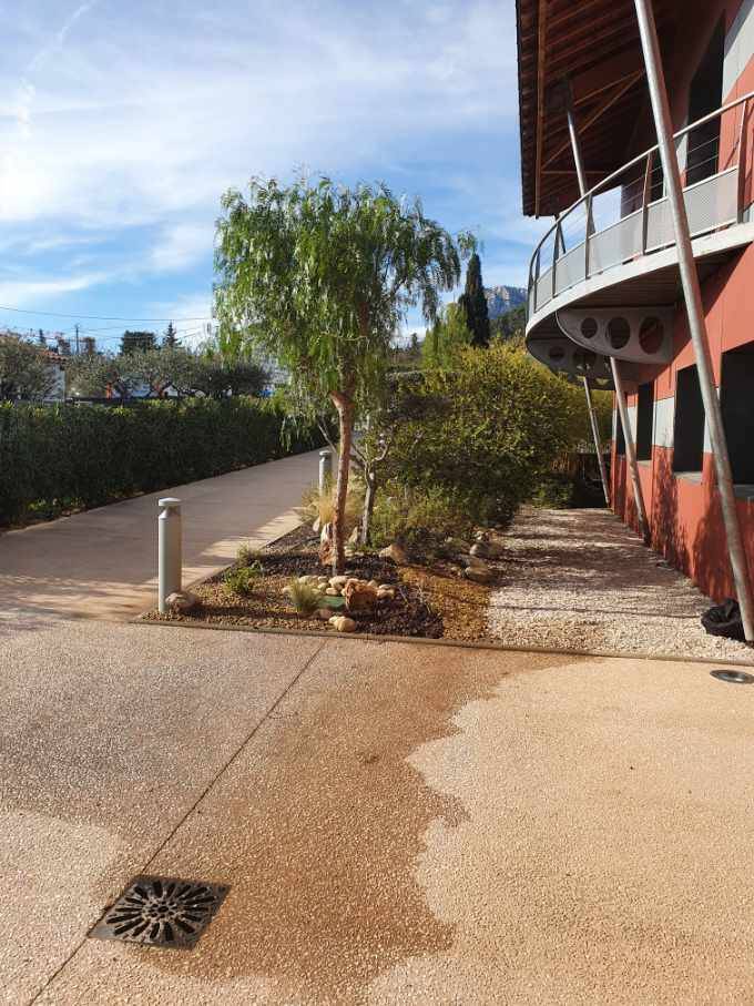 Les Jardins de Laurent, paysagiste doté de plus de 25 ans de savoir-faire dans le Var, vous présente une création paysagère arborée pour habiller le devant du bâtiment des Maisons du Midi à Solliès Ville.