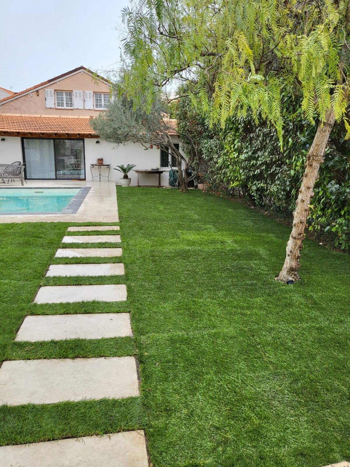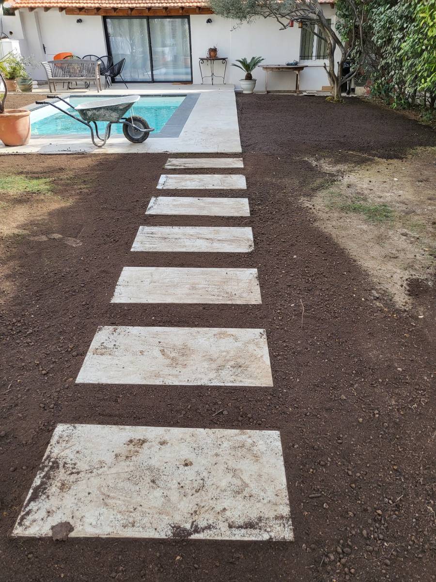 - et la pose sur la partie plage de piscine en pelouse naturelle.